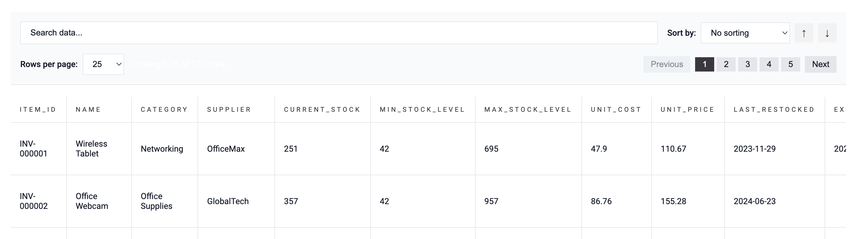 - Enable Sorting: Sort columns ascending or descending