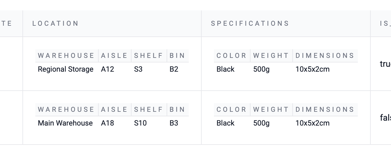 }It looks fine in raw JSON, but if you need to search by warehouse or scan multiple items, it becomes messy fast. That’s the problem TFJ solves.